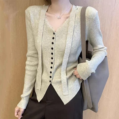 on.[CD610]타이레이스브이넥가디건