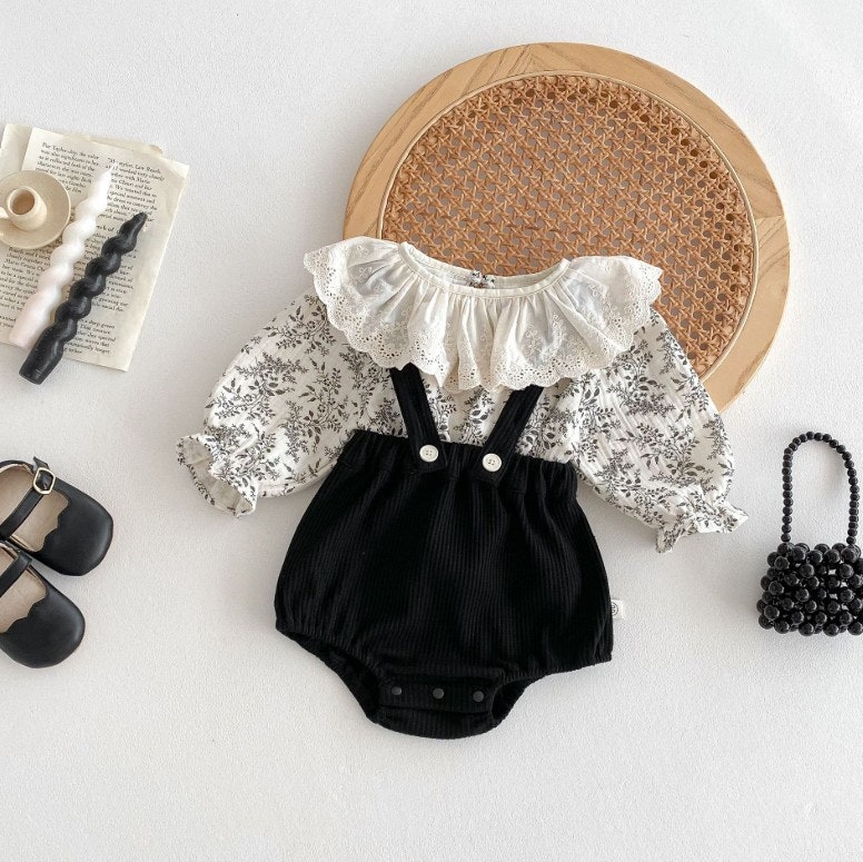 [수입]꽃무늬멜빵바디슈트