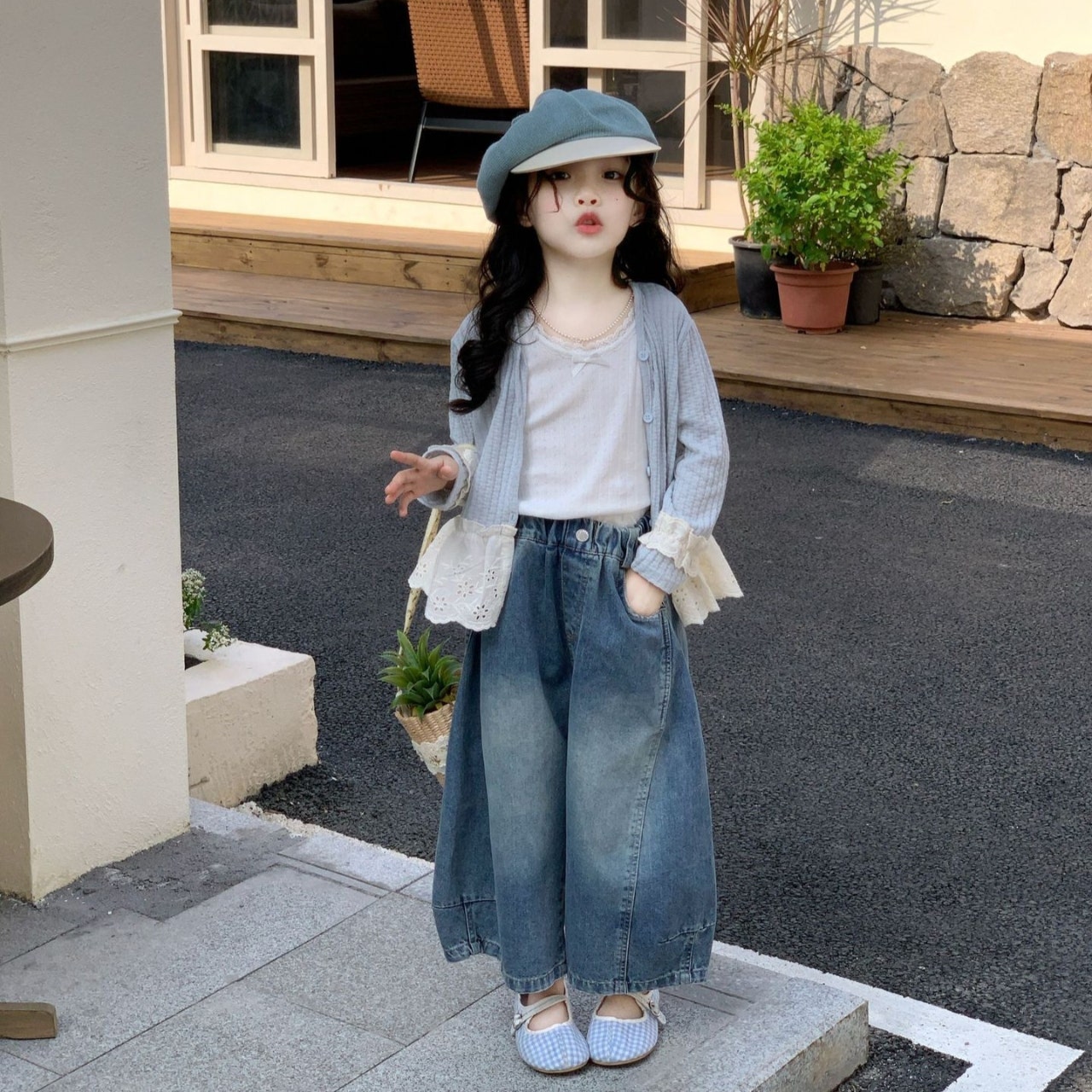 [수입]프릴가디건와이드청3pcs