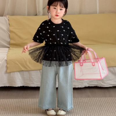 # 리본레이스티+데님바지SET