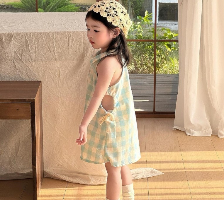 [수입]블루체크펀칭원피스